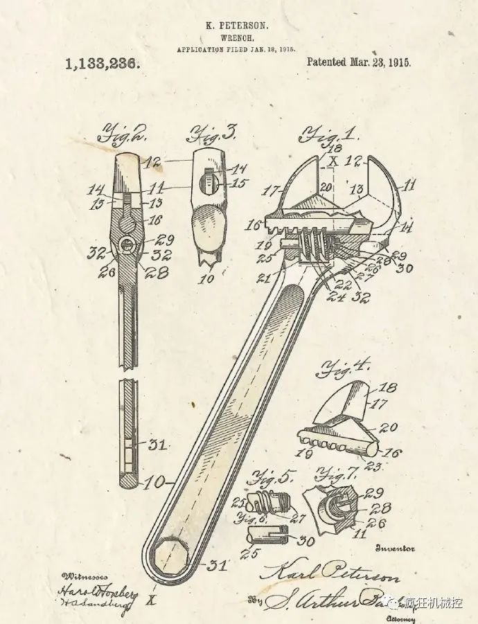 正文摘要:扳手的發明專利。瞥一眼過去,1915 年的。- F) r+ P" s& h: K+ r$ B9 ]% X ' W4 [& K$ ]! C4 j2 ~ 2 b6 _ _! q/ P! l" R$ L ; i% ?/ U6 r7 i3 ? |
