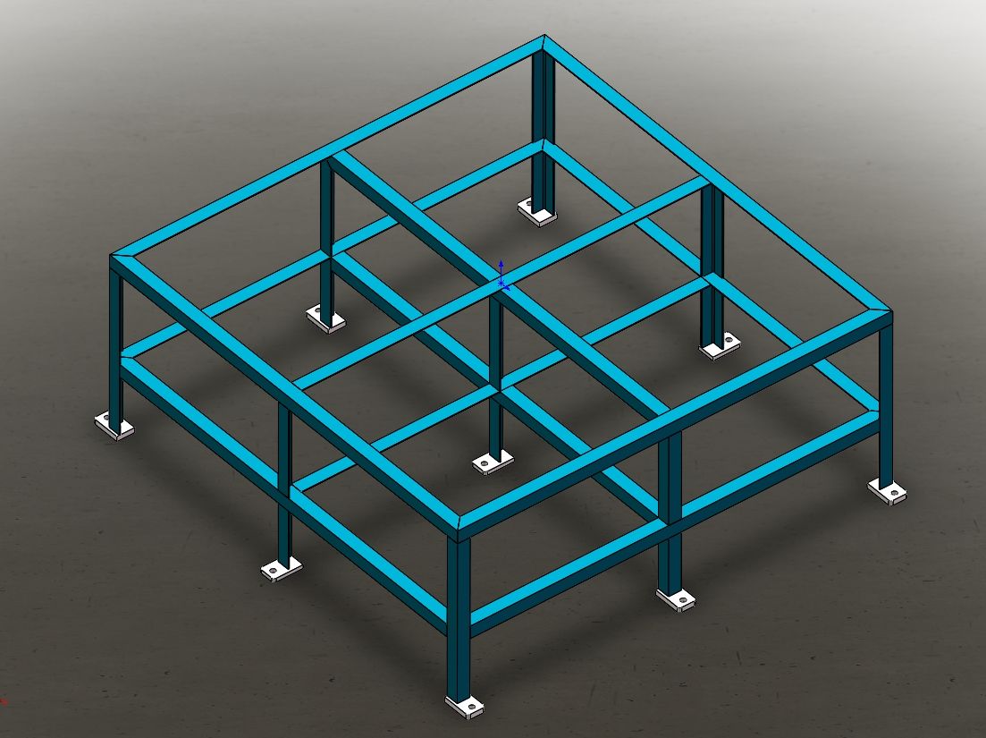 80的方管或圓管做支腿,橫梁使用工字鋼。做的稀疏一些。 材料的成本是一方面,下料焊接的工費也是成本。 如果這個架子需要長距離運輸,可以考慮做成組裝結構的。可以參考這種貨架