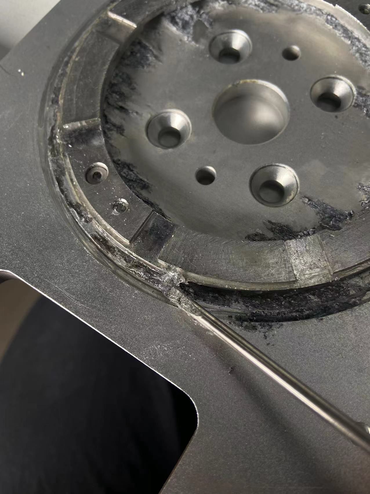 正文摘要:初步看是 腐蝕了 上面還有部分透明油脂 補充內容 (2023-8-9 13:41): 工件是 固定的軸上面 轉速大概2000r/min 中間的環部分是真空吸的,這個工件上面有個吸盤吸住客 ... |