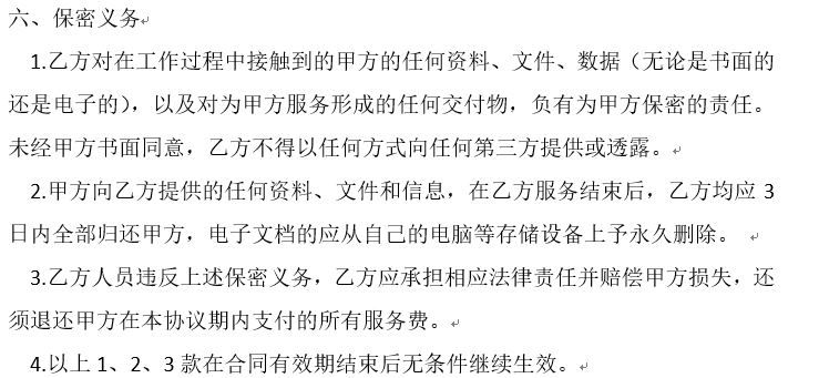 永久刪除,技術上很難做到的 ,怎么定義?就像曾經的冠希去修電腦,還是有辦法恢復的。 這種保密協議,又是兼職,簽不簽,要求對方修不修改?如果較真起來,永久刪除這一項,或多或少是個雷。 看自己的選擇余地了,有的選就提出保密協議中的問題;沒得選,就不要猶豫了,直接簽就行了(或許公司也就走個形式): i9 W) }$ p1 B' i & m- P! _8 p, x! w I: D$ E4 ~, l4 K |