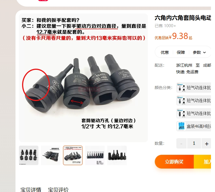 | 電動扳手的賣家沒有配套的套筒嗎? |