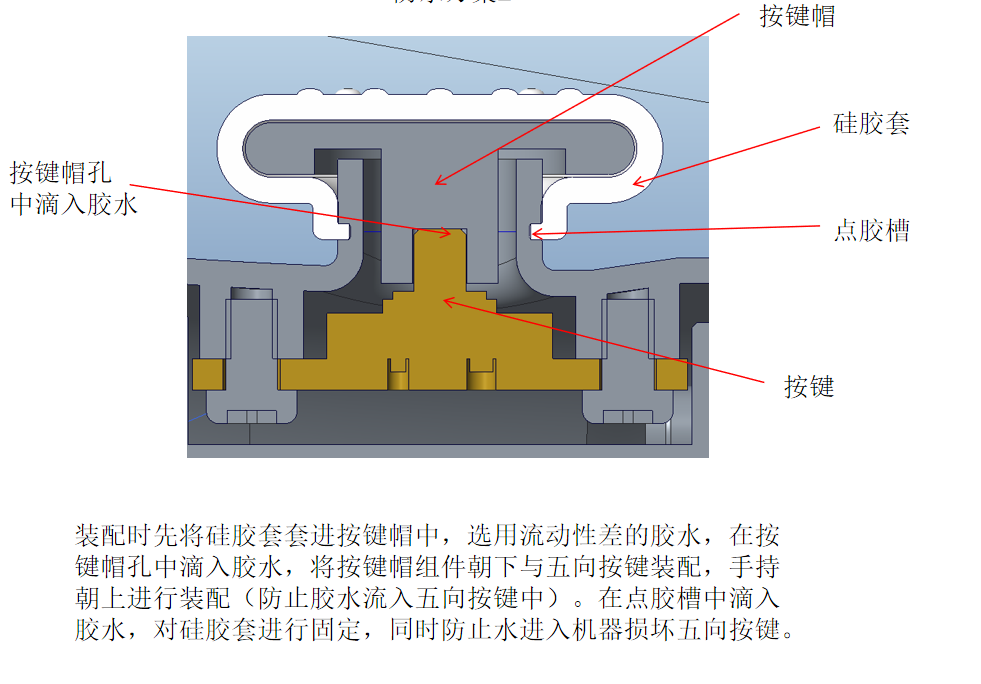 膠的硬度高一些,不些膠水就可以,電子按鈕行程很短. 包膠不需要設計這么復雜,怎么好卡住利用自身的硬度,怎么設計,然后兼顧下IP 防護 |