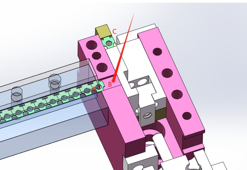 1. 直接錯位,容易卡頓,錯位的一個擋邊是流道,流道后期維護可能還得替換 2. 經過B到C,外部是獨立的錯位機構。缺點是流道內的料比較少的話,出料效率就低很多 |