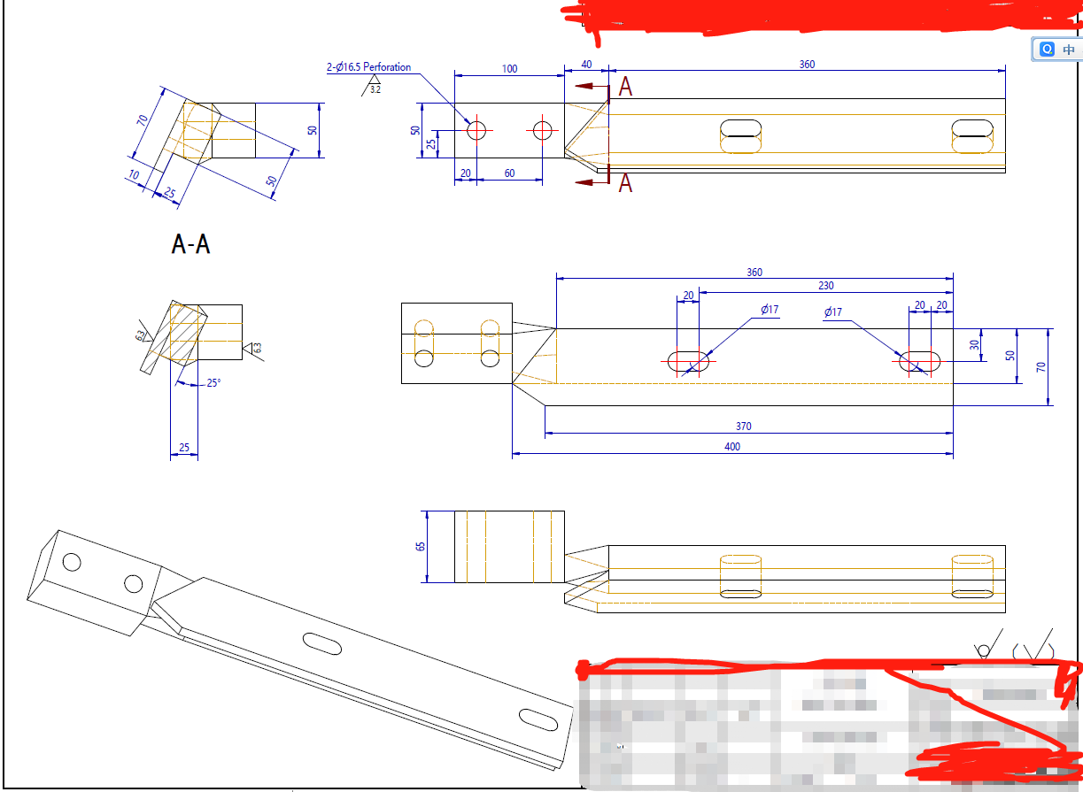 大佬們,現在手里有個國外二維圖紙,小弟實在看不出來中間連接的那塊是怎么整的,三維丟失了。