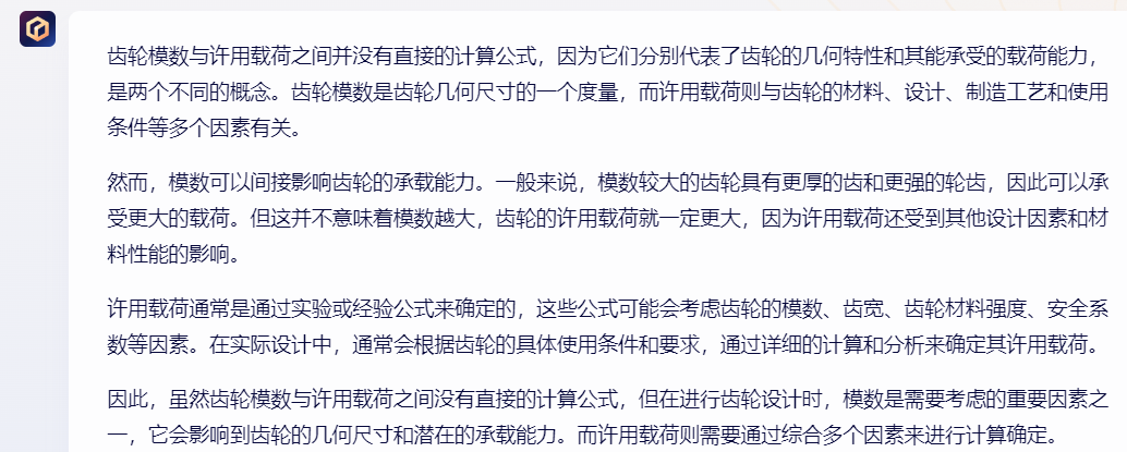 正文摘要:本帖最后由 面壁深功 于 2024-5-3 07:56 編輯 u) N- |8 a6 E! P" q0 `" o 4 f* D$ n& c. v' d) }提問一:齒輪模數與許用載荷之間的計算公式 D7 w, E5 x0 R7 P! U& i《文心一言》的回答見 ... |