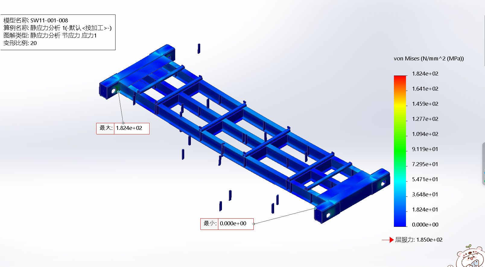 | 二十噸不大的重量,最多聯(lián)接位置板搞厚點,最大應(yīng)力也不大。 |