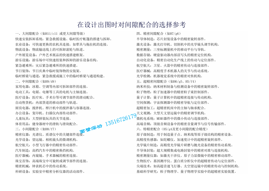 正文摘要:本帖最后由 面壁深功 于 2024-8-19 07:03 編輯 今天分享的是:間隙配合選擇參考(詳見附圖)間隙配合:孔的公差帶在軸的公差帶之上,孔和軸之間有間隙。用于需要易于裝配和拆卸的情況。在機械設計出圖中,間隙配 ... |