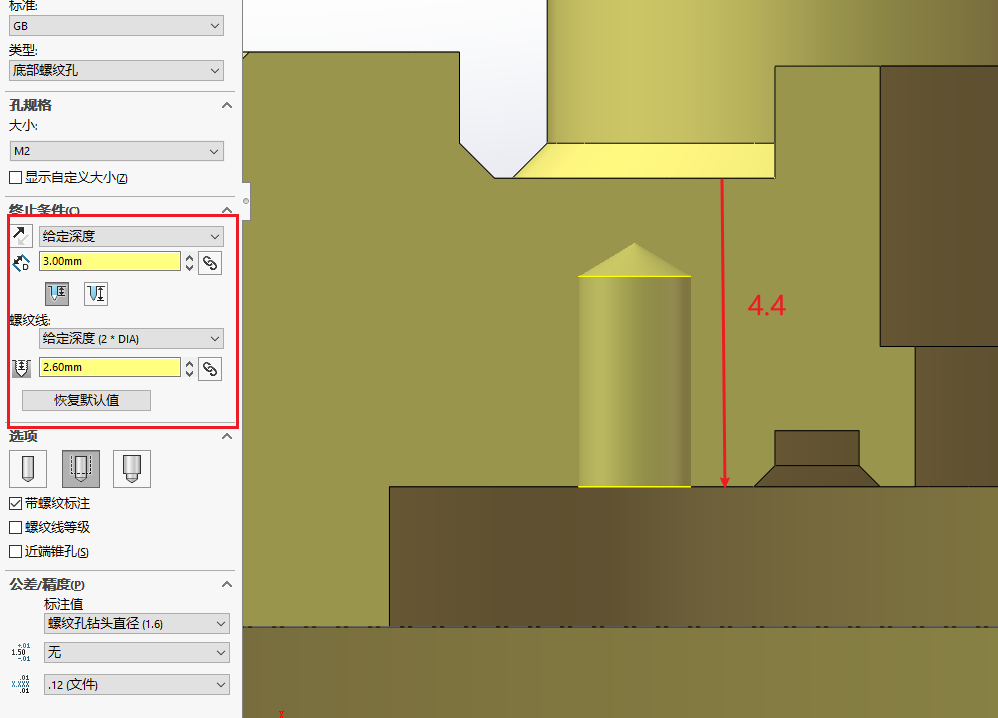 正文摘要:1、各位生產(chǎn)、設(shè)計(jì)大佬,我這個(gè)件,厚度4.4 mm,不能打通。現(xiàn)在想鉆一個(gè)M2的螺紋孔,SW的這個(gè)設(shè)置正確嗎?加工方便嗎?螺紋端面距離壁留多少適合加工呢?2、我看機(jī)械設(shè)計(jì)手冊(cè),聞邦椿版,里面鉆孔深度很大啊,完全達(dá) ... |