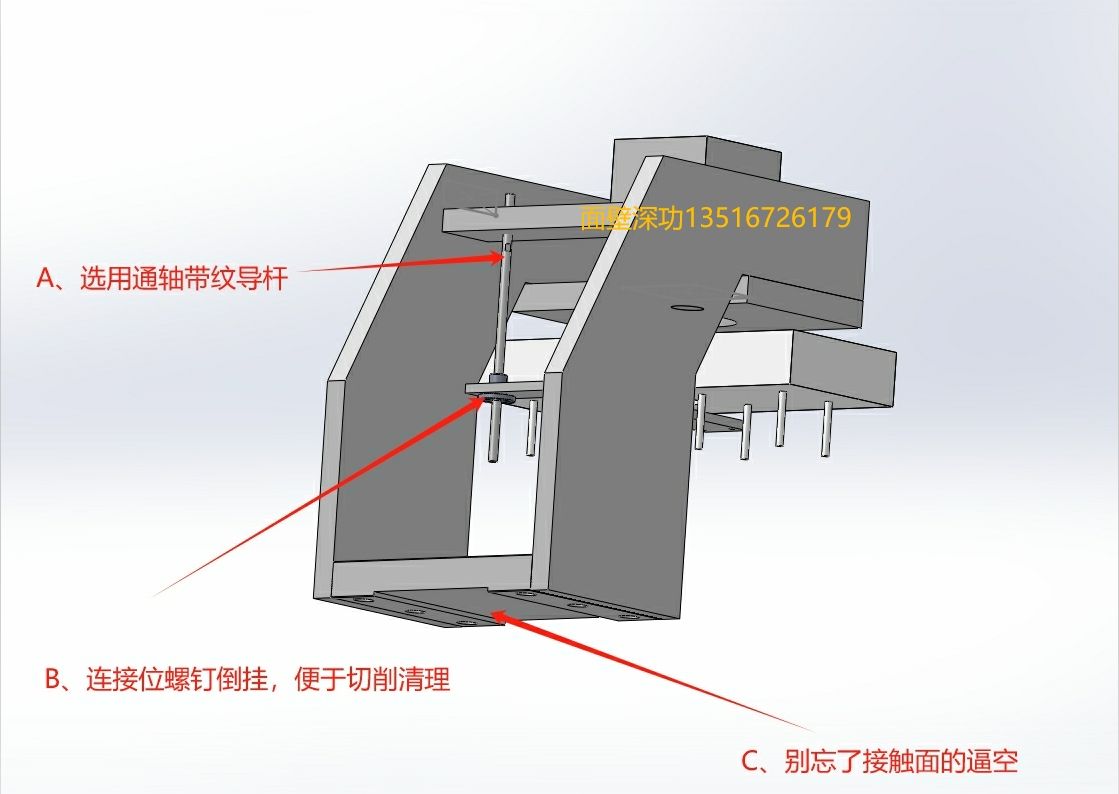 正文摘要:本帖最后由 面壁深功 于 2024-9-17 07:15 編輯 圖片是做設(shè)計方案時的3維樣式。其中涉及ABC三點(diǎn)和新增D點(diǎn)的細(xì)解如下: A、a導(dǎo)桿連接位,鉆個螺紋孔,千萬注意,下底面一側(cè)需要帶一個光孔以作導(dǎo)桿的定位; &n ... |