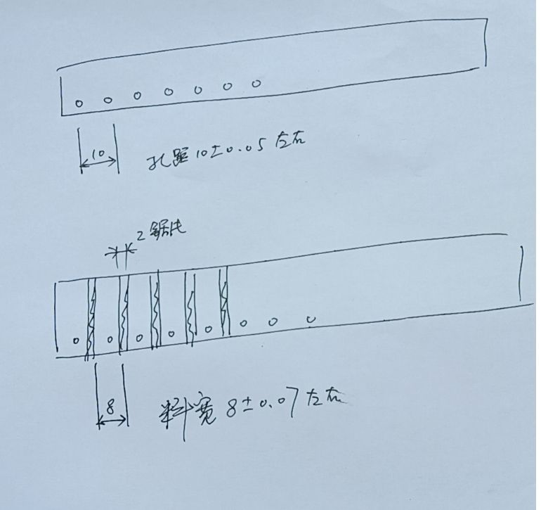 | 覺得應該是累計誤差問題。孔間距和寬度沒問題是因為你送料精度沒問題。孔到邊緣距離屬于二次定位,你這邊完全靠第一次定位來保證,會增加累積誤差。 |