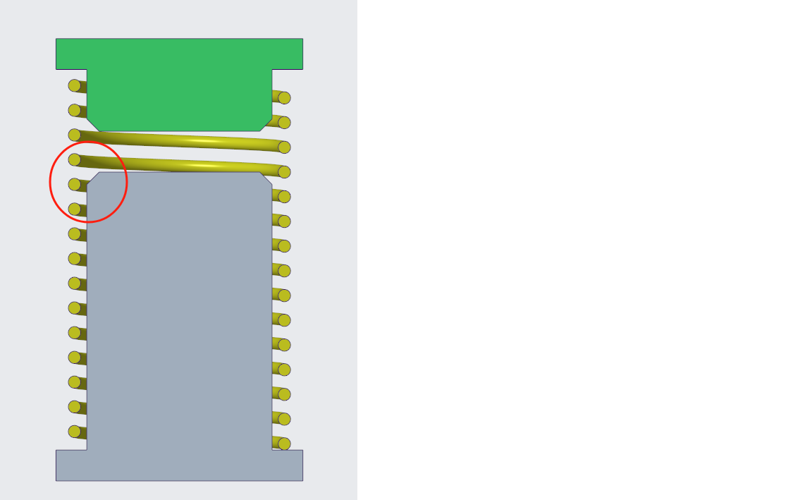 正文摘要:壓簧裝在直線軸承外壁,壓縮的時(shí)候和外壁摩擦有噪音,有時(shí)候壓縮時(shí)壓簧彎曲甚至在倒角處卡住。 圖片示意,其實(shí)壓縮量只有三四十毫米,只是中間一段空著沒導(dǎo)向,彈簧彎曲有卡住的概率,有什么辦法能避免卡住風(fēng)險(xiǎn)和減 ... |