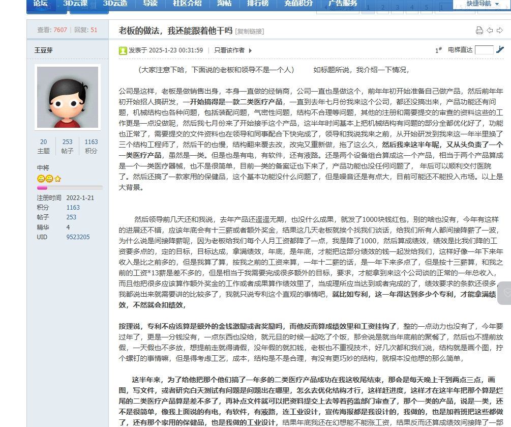 正文摘要:這個帖子我相信大家都看過了把,現(xiàn)在迎來了新一波進展,我上個帖子上面寫的以為是他的全部了,以為他也就這樣了,結果前兩周我申請的那個專利要寫發(fā)明人姓名的時候了,老板找我們和我們說 ... |