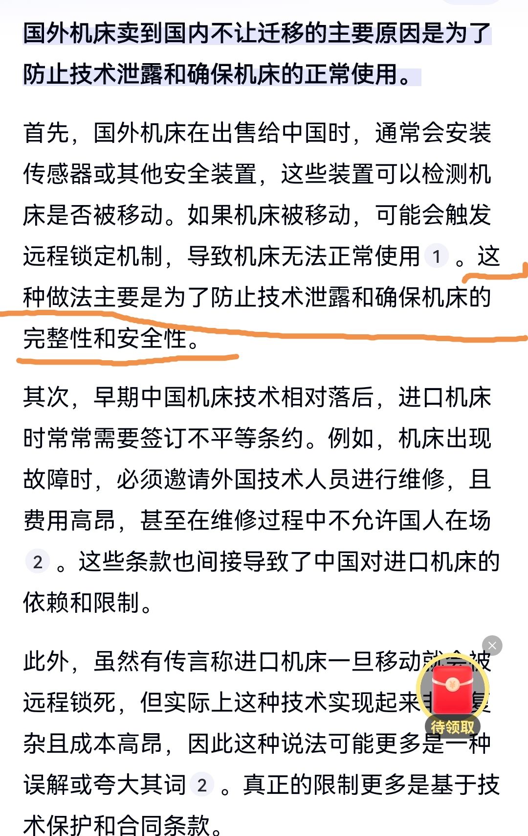 | 扯那些沒(méi)用的,不準(zhǔn)移動(dòng)是以前的中國(guó)軍事落后,國(guó)外為了防止東芝事件再現(xiàn)出的規(guī)定,現(xiàn)在買機(jī)床早沒(méi)這些說(shuō)法了,能買到的不需要限制,需要限制的直接禁售不賣。就算真的軍工需要國(guó)外機(jī)床做點(diǎn)什么也會(huì)直接下單給民企,中間起碼轉(zhuǎn)手十幾道,終端生產(chǎn)的根本不知道做的是哪個(gè)項(xiàng)目的,就算機(jī)床廠家裝的后門都沒(méi)用。真正涉密的機(jī)床都是國(guó)產(chǎn)的,專門定做的。軍工要求沒(méi)有民用那么高,什么零件都按高精度設(shè)計(jì),軍費(fèi)那要上天 |