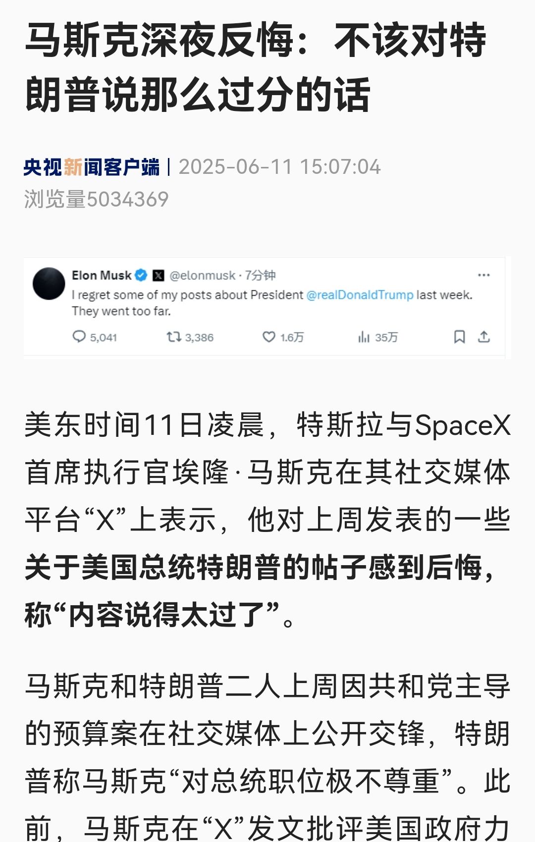 本帖最后由 bonetr 于 2025-6-12 08:10 編輯 老馬和老特兩個人是不是在唱雙簧,演苦肉計。 這不算內幕交易吧