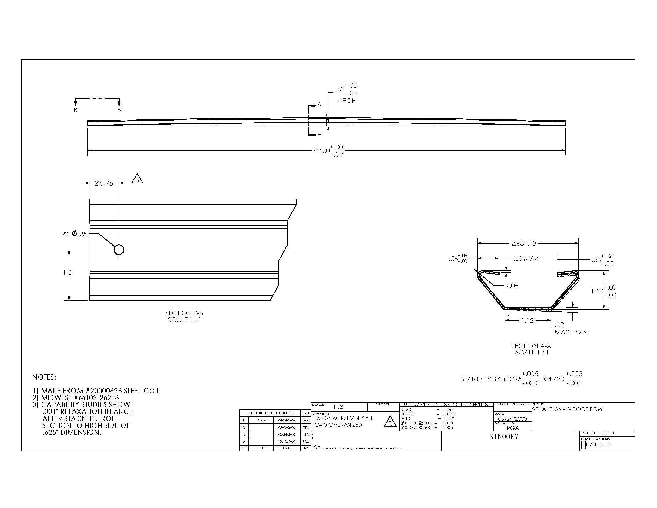 這產品材料可選用ASTM A653 Gr80,厚度可選1.2或1.3mm圖紙上單位為inch