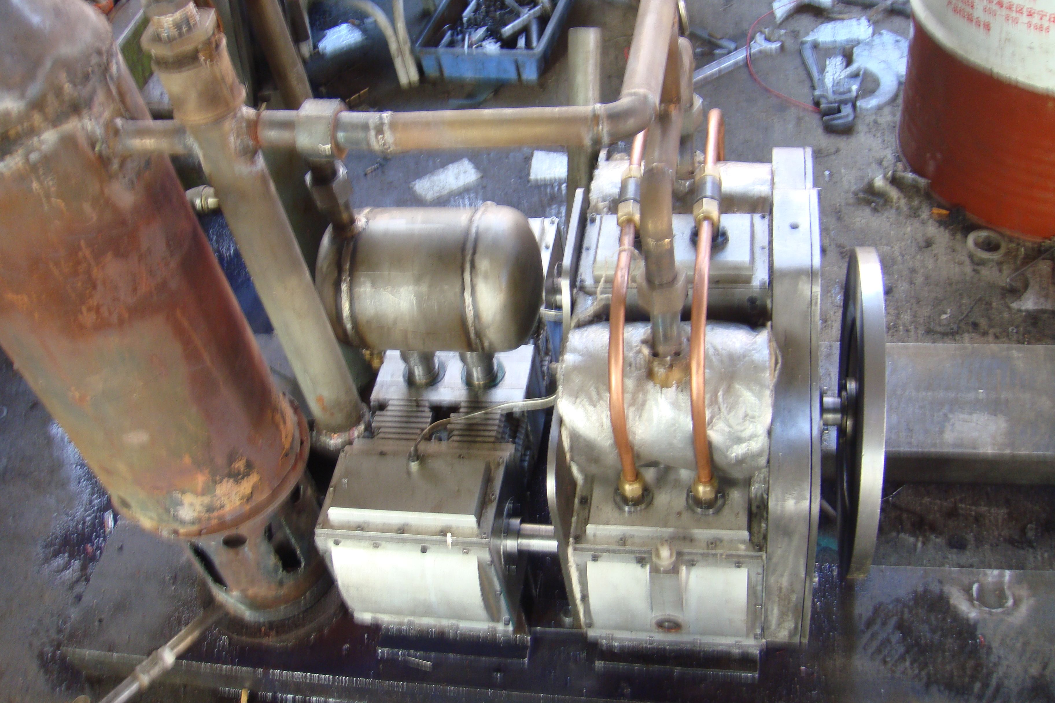 原理 很對,打個簡單的比喻,使用三臺可逆的氣動馬達(就是可以做壓縮機的那種),同軸運行,一個作為壓縮機,吸進空氣,出口連接加熱器,加熱至兩倍的環境溫度(注意是絕對溫度兩倍),再把加熱后的空氣送到另外兩臺氣動馬達的進氣口,這兩臺出氣口直接排出,理論上就能輸出加熱量一半的機械能。相當于百分之五十的熱效率。# P; n: v* S' R( ]) { 看起來樓主的機器就是這種原理,只不過,氣動馬達的效率太低,就算達到百分之七十,加起來的效率損失就高達百分之四十九了。* m, t- i! ~( e: Q: X 這種效率理論上是可以提升的,實際上沖壓發動機就是這種原理,只不過是通過加入燃油輸入熱量,通過高昂的材料精密加工工藝將效率提高。% C! `! j% p) L) l. z r9 ~( e 這種是熱氣機不屬于斯特林機,也不適用于卡諾循環,后兩者是閉式循環,命門就是余熱無法及時排放。 個人覺得,樓主這種機器才是未來太陽能以及生物質能實際應用的趨勢。. t) u# I" z+ ~* n 一點個人意見,勿噴 |