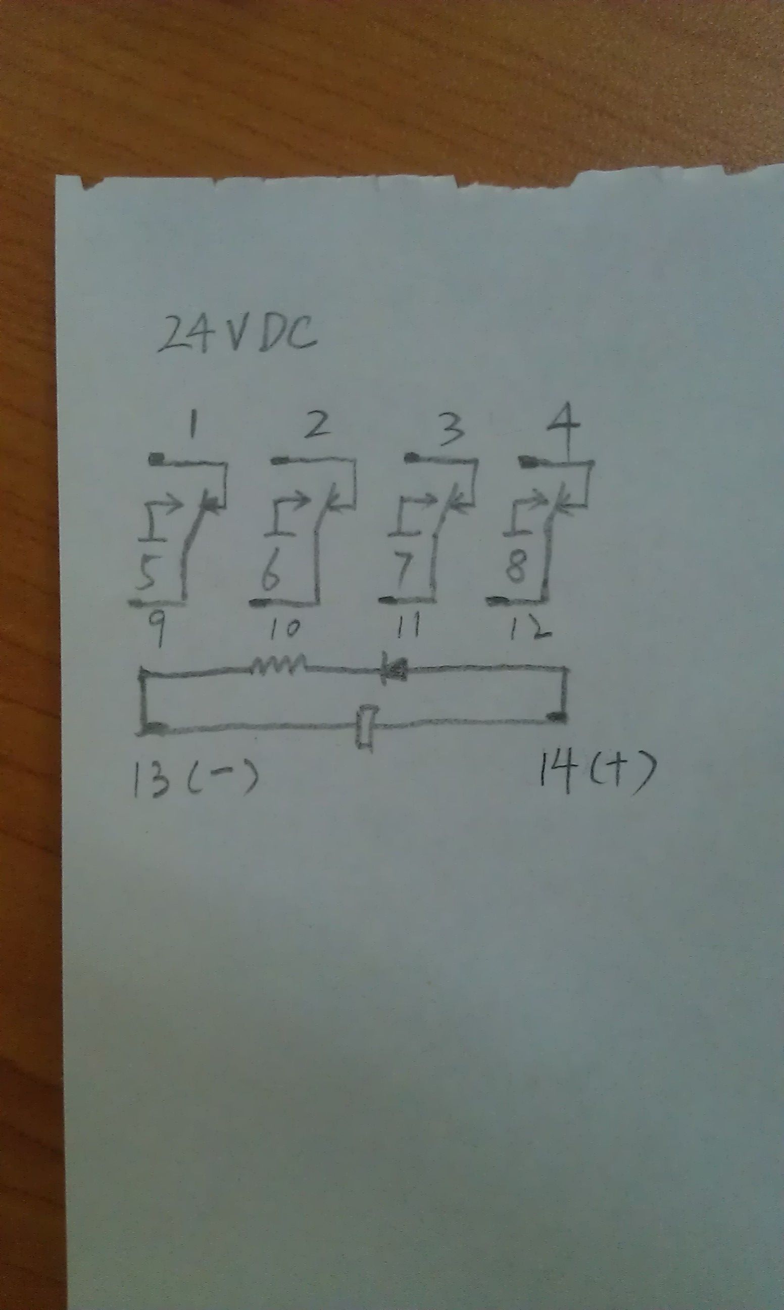 | 這就是24V直流繼電器嘛,13、14腳是線圈,其它的是觸點。四聯的 |