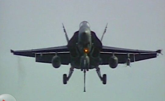 | 飛機(jī)的尾勾,在高彈性高強(qiáng)度直桿的末端有一倒勾,另一端接在飛機(jī)尾梁上,可繞尾梁支點(diǎn)旋轉(zhuǎn)實(shí)現(xiàn)收放,在勾住阻攔索后,阻攔索帶動甲板下的減速機(jī)構(gòu),實(shí)現(xiàn)艦載機(jī)的著陸 |