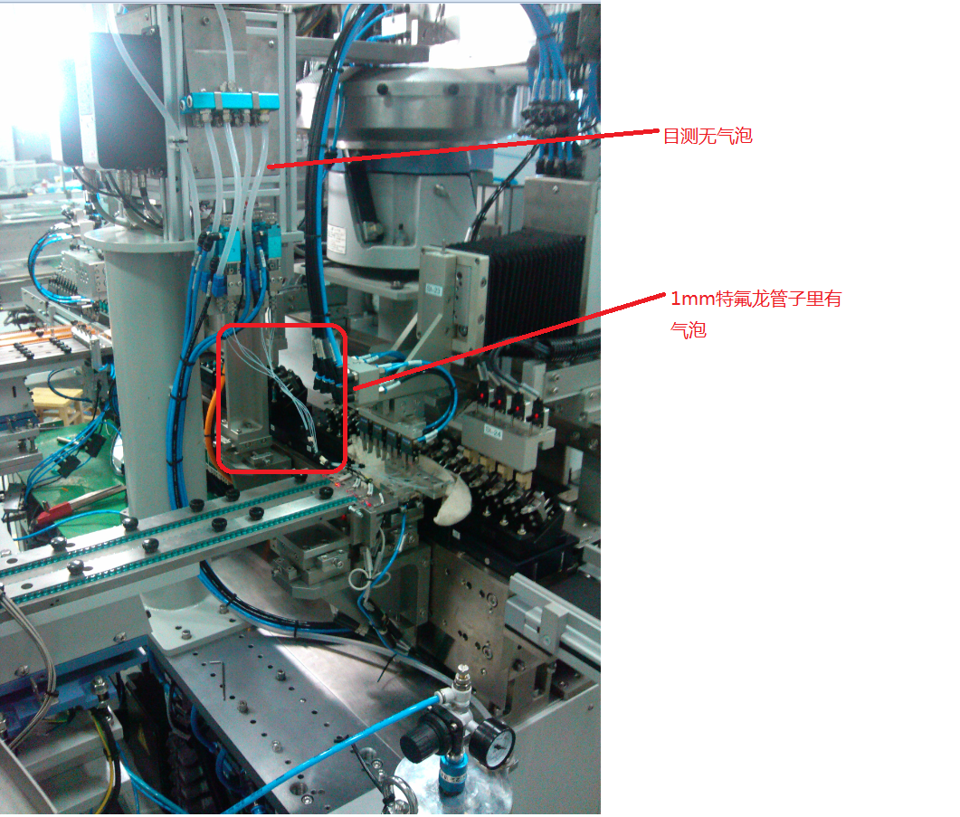 正文摘要:本人對點膠不熟,現在設備上一個工位需要點膠,求幫助。 具體情況如下方圖片:壓力桶--8mm特氟龍管--控膠閥(接1分2針頭)--套1mm特氟龍管--斜口導套--產品 膠為溶劑,名稱四氫呋喃 在8mm管里目測并沒有氣泡,但是當 ... |