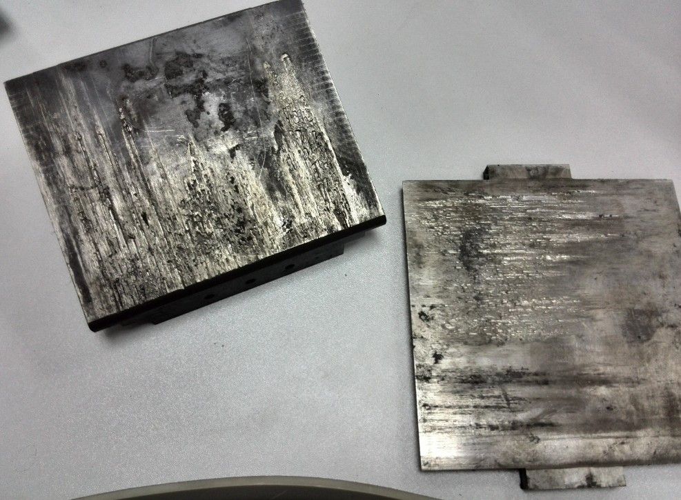 正文摘要:現(xiàn)在有兩個(gè)零件 是用在100t壓力機(jī)上面的,工作時(shí)兩個(gè)零件有相對(duì)移動(dòng),速度很慢,但是力是增加的,工作一段時(shí)間后,就磨損成這個(gè)樣子了,現(xiàn)在一個(gè)零件結(jié)構(gòu)復(fù)雜一點(diǎn),是用40Cr,熱處理是表面淬火HRC50-55。另外一個(gè)滑 ... |