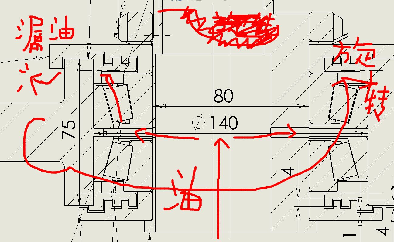 | 感覺(jué)大家說(shuō)的都挺有道理的,但是在這種直徑的軸上使用密封圈,磨損之后的檢修和漏油都是問(wèn)題,加工回油孔,使用迷宮密封是這種承受徑向載荷比較合理的結(jié)構(gòu),其實(shí)如果樓主不改結(jié)構(gòu)的話,還是用潤(rùn)滑脂吧,方便省事,不用油泵那一套東西,簡(jiǎn)潔大方挺好的啊 |