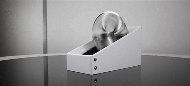 | 俺覺得是摩擦力、重力共同作用的結果,再加上彈簧的超級柔性,一定彈性,慣性.......巧妙的結合點,好玩 |