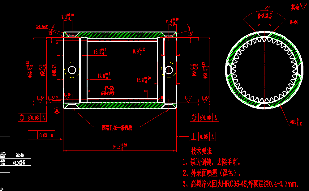 正文摘要:如圖是我們廠做的一款內齒圈,采用臥式拉床拉齒,然后齒面高頻淬火,最后精車兩端54.5的內臺階孔。我們目前用的精車工裝是將滾針置于內齒齒距中并在漸開線上滾動來鎖緊齒圈,并且受到切削力作用后會越發鎖緊。那么問 ... |