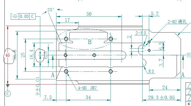 桃源閑客 發表于 2015-9-7 14:35 4 y4 q+ `6 r& c$ Q# S- H7 u T1、尺寸為9±0.03mm的面,只有一個面,怎么會有對稱度。 ! B" S* I5 \: Z2、應該考慮用平行度替代。