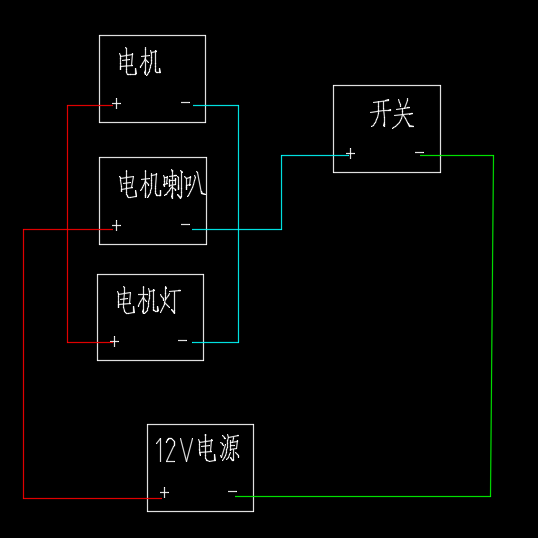 | 首先是看你使用電機喇叭,和電機燈的功能是什么,按你現在接的話,如果電機燒了等還是亮的,起不到指示作用 |