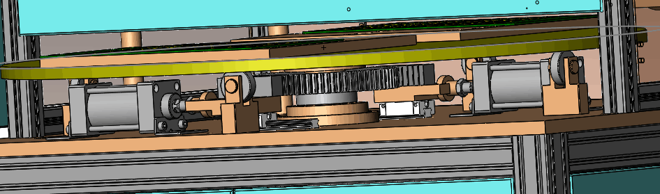 正文摘要:如圖,氣缸帶動齒條做直線運動,齒條帶動齒輪旋轉,從而帶動上面的圓盤轉動(黃色部分是圓盤)圓盤有兩個工位,即旋轉180°要停,我怎么限位,讓圓盤剛好旋轉180°,大神都幫忙看看唄 ... |
