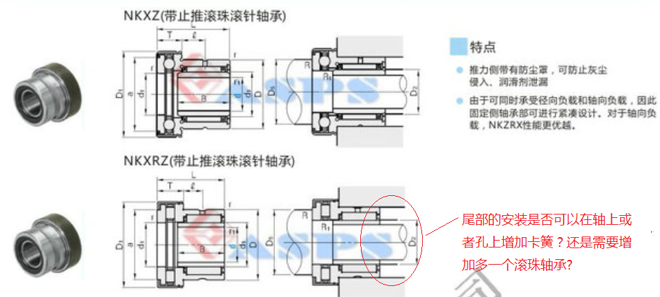 正文摘要:如圖所示, 帶止動滾珠滾針軸承的結構設計在尾部的安裝是否可以在軸上或者孔上增加卡簧?還是需要增加多一個滾珠軸承? 帶止動滾珠滾針軸承的結構設計到底如何設計為正確? 謝謝。 ... |