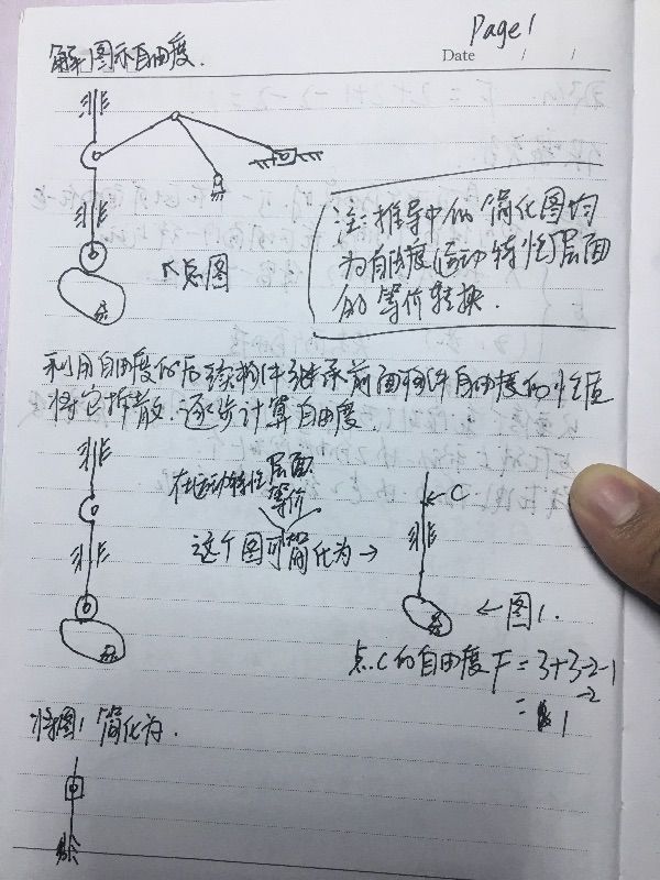 講真啊,這個(gè)機(jī)構(gòu)并不復(fù)雜,一個(gè)虛約束,一個(gè)復(fù)合鉸鏈,一個(gè)局部自由度,而且每個(gè)運(yùn)動(dòng)副都很清晰明了。LZ這種后續(xù)構(gòu)件繼承前面構(gòu)件的理論在課本里沒怎么見過啊,點(diǎn)的自由度怎么理解?如果來個(gè)更復(fù)雜的,等價(jià)的過程是不是比直接計(jì)算還要麻煩啊。不過LZ這種深究的精神本屌佩服。