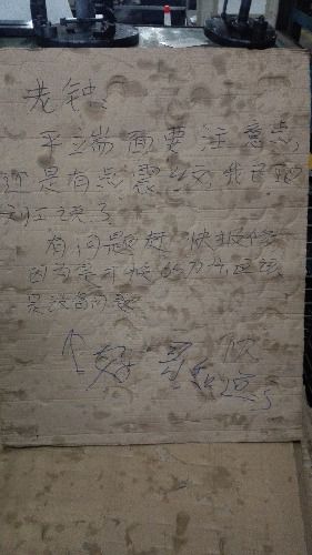 | 我們廠有正規的交接班記錄,但是很多工人喜歡這樣有創意的記錄情況,在道具、文字描述上盡可能展示藝術 |