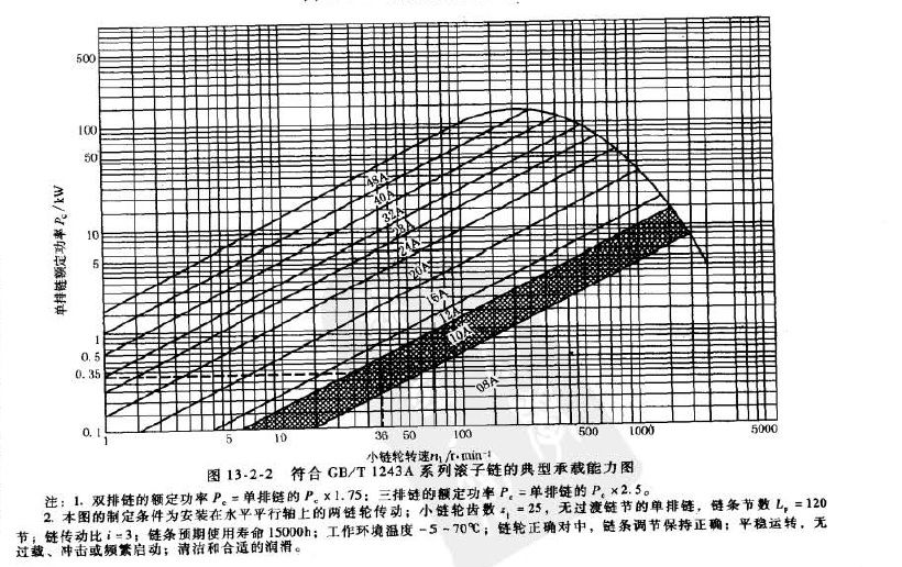 正文摘要:如下圖是《機械設計手冊》鏈傳動的功率圖標,x軸和y軸的數值不全,而且分布也不均勻,那么例如我要查一個24r/min,4.5KW對應的鏈條應該查那條線呢? ... |