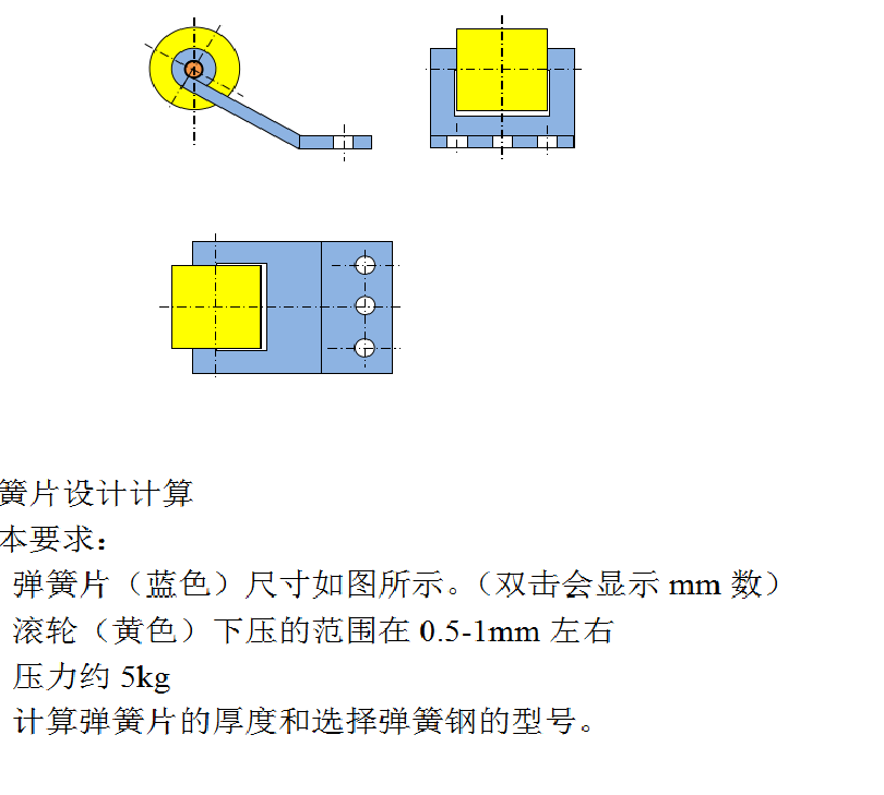 彈簧片尺寸擊不出來 有無數個解。只要小于某一最大尺寸即可 需要最大尺寸? 找賣彈簧的問一下 要幾片不同厚度的試一下 |