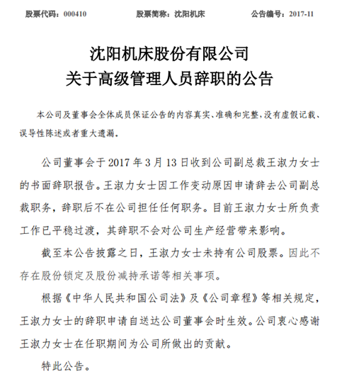 正文摘要:近日沈陽機床股份有限公司發布高管辭職公告。公告稱,公司董事會收到副總裁王淑力女士的書面辭職報告。 0 v# G# E* J# J8 n+ C 8 j1 E+ F9 K* l' l7 v% n' i4 g: C. b 2 e! n6 }1 [( _& R1 G' u/ X0 ... |