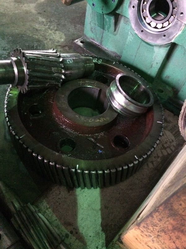 這齒都磨禿嚕了,連個齒面都沒有了,沒法測繪 s6 h" F7 s. R; v, p! k& S) I 9 {" I( I- u+ H0 @8 W: K+ k 建議樓主數齒數,測繪中心距,根據載荷情況重新設計 |