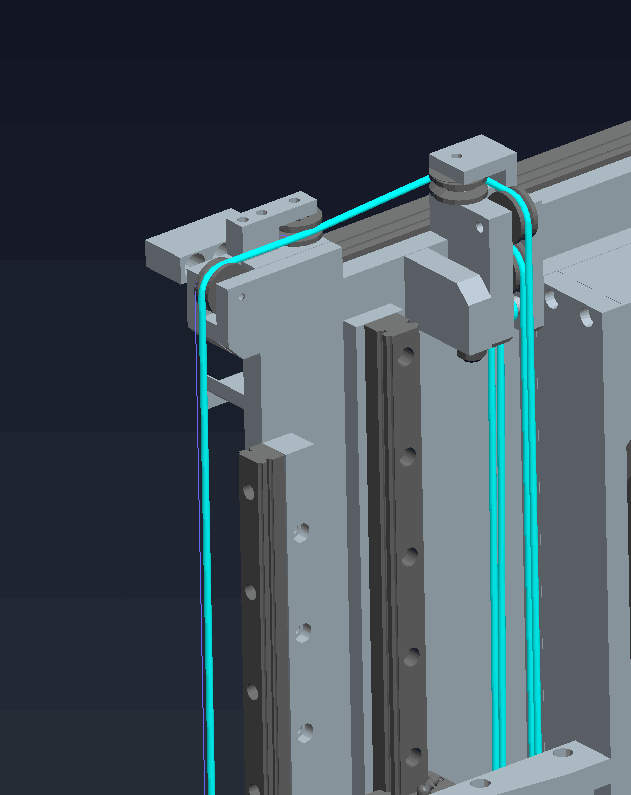 建議取消那兩個水平滑輪,把最上面那兩個垂直換向滑輪都旋轉一個角度,形成共面。 |