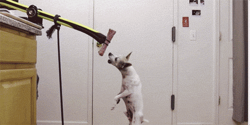 | 哈哈!這個太可愛了!那只狗狗也是很可憐了,就是吃不到啊……它鍛煉久了是不是就擁有絕佳的后腿肌肉? |