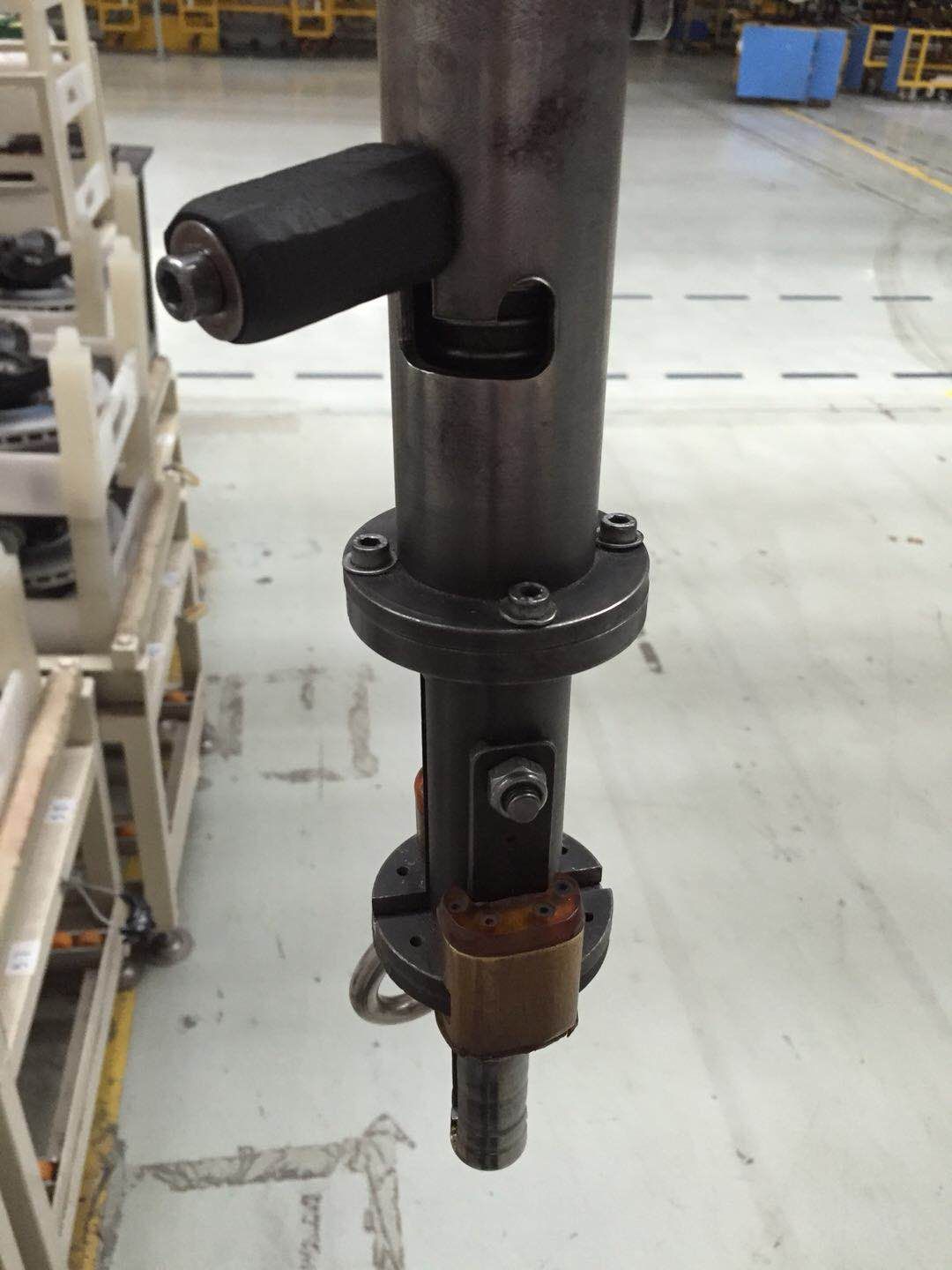 | 夾具是先伸入孔中,然后上面那個把手往下,爪勾伸出掛住下面那個沉臺孔,把產品吊裝至另一個工位,再把把手往上拉,把爪勾縮回,卸下產品!基本就這樣吧!! |