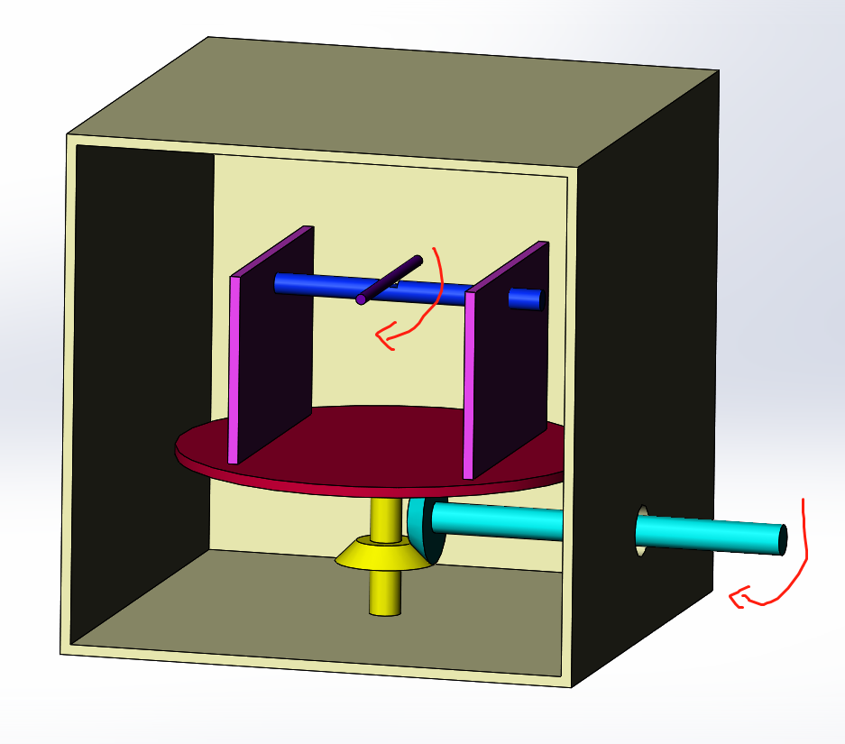 正文摘要:如圖所示,設(shè)計一個小機構(gòu),一個密閉的方形盒子內(nèi),要實現(xiàn)轉(zhuǎn)盤轉(zhuǎn)動,且轉(zhuǎn)盤上面有一個圓柱狀棒要如圖空間旋轉(zhuǎn),兩個運動獨立互不干涉,請教各位大神誰有好的創(chuàng)意或者成熟的機構(gòu),指點指 ... |
