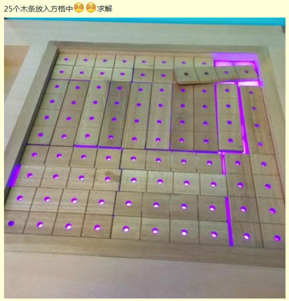 韓寒11 發表于 2018-5-24 13:38/ a4 G3 ~9 D$ D1 T4 t% W 一條4個小方格,沒有兩個小方格的木條; E0 a6 o& X: K/ u1 r1 a& f |