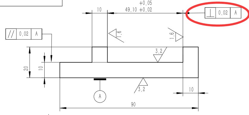 圖上的標(biāo)注表示取兩個面的中心面,然后評估中心面與A基準(zhǔn)的垂直度是否滿足0.02. 如果要分別表達(dá)兩個面都需要滿足垂直度0.02,需要在49.1尺寸兩側(cè)分別標(biāo)注位置度公差,并且位置度公差的引線不能和49.1的尺寸線在一條線上,要上下錯開,并且在49.1尺寸線下方。 |