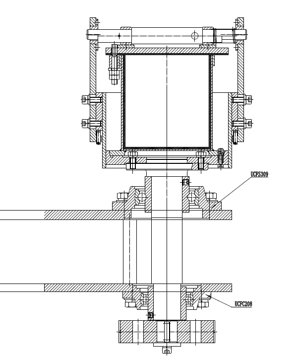| 你這個(gè)機(jī)構(gòu)自轉(zhuǎn)的同時(shí)也要公轉(zhuǎn)吧?你說的離心力應(yīng)該是公轉(zhuǎn)產(chǎn)生的吧。你這上下軸承位同心度偏差多不?不行就換軸承吧,角接觸或者圓柱滾子試試。這個(gè)帶座軸承就是方便點(diǎn),不用搞那么多加工件 |