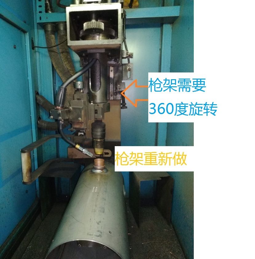 正文摘要:公司有一臺環縫焊機,環縫長度在150mm左右,現有結構焊槍線走轉軸中間,容易壞。 求大師出招: 現有槍架結構,可以轉720度 |