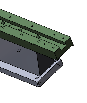 請問如圖綠色零件,過料槽兩邊給多少的公差?保證物料能順利通關軌道?