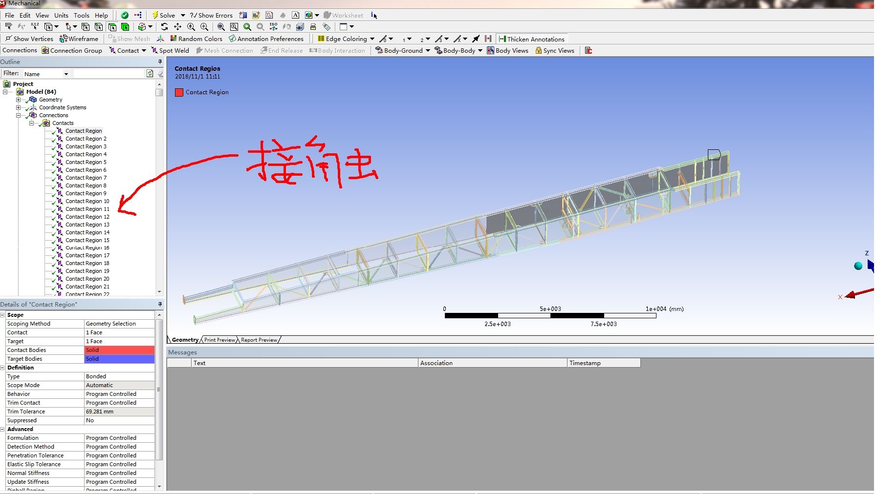 在下剛剛學習ansys wokbench,在solidworks中建模型,該模型只是一個鋼結構模型,屬于單個零件,不是裝配體,導入ansys wokbench中,進入model模式中后,connections中的contacts有幾百個ContactRegion(具體圖片見 ...