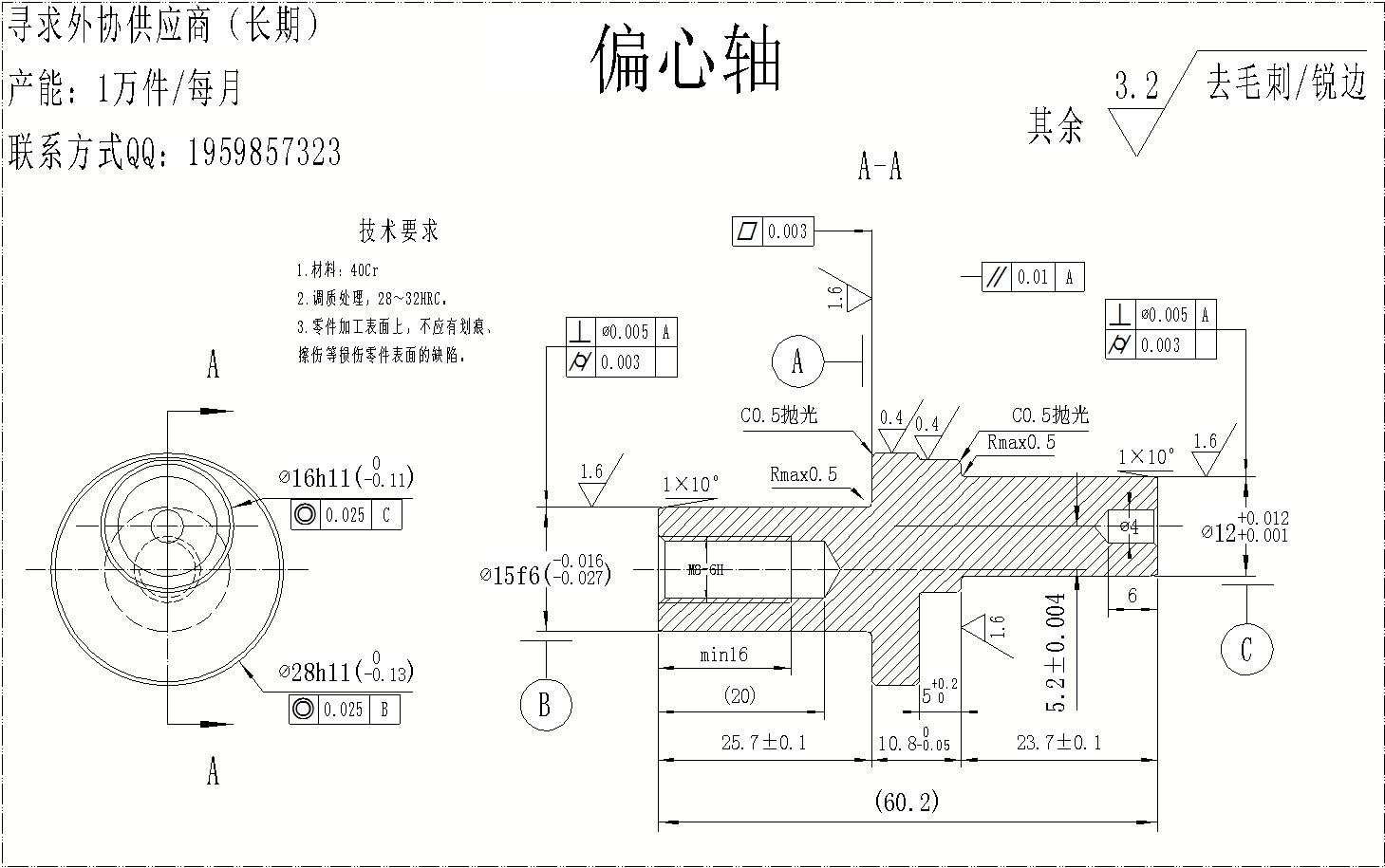這個零件還是沒看明白,兩頭軸公差和圓柱度要求很高,肩胛面要求也很高,粗糙度才要求1.6,可以車? 中間的形位公差和尺寸公差要求很一般,可是卻是0.4粗糙度,不磨不行。有調質要求,粗加工后調質精加工?什么車床能滿足圓柱度和偏心公差要求?還有需要什么樣的刀具? |