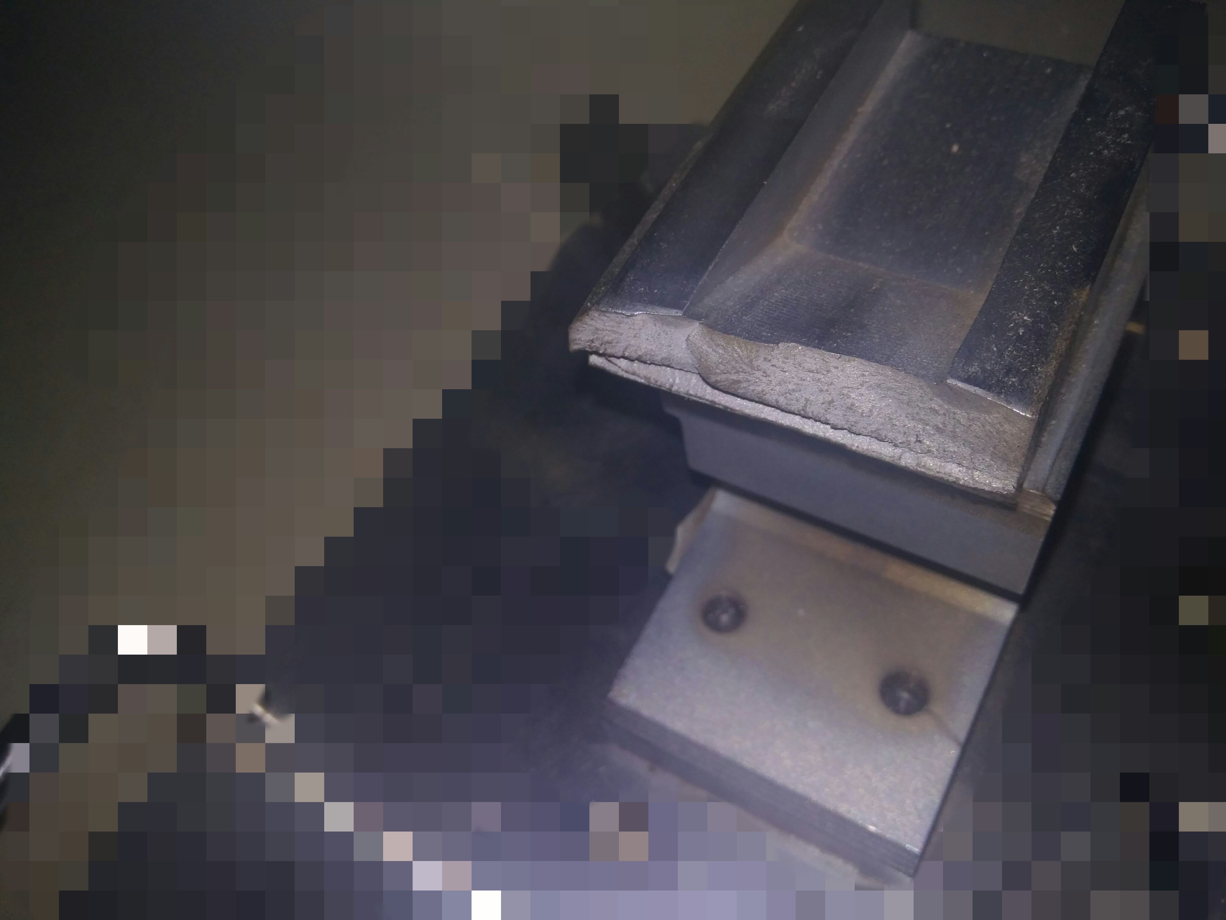 | 會不會材質有問題?skd11的韌性和強度都很好,看斷口跟脆性材料的斷口一樣,齊齊斷掉了。 |