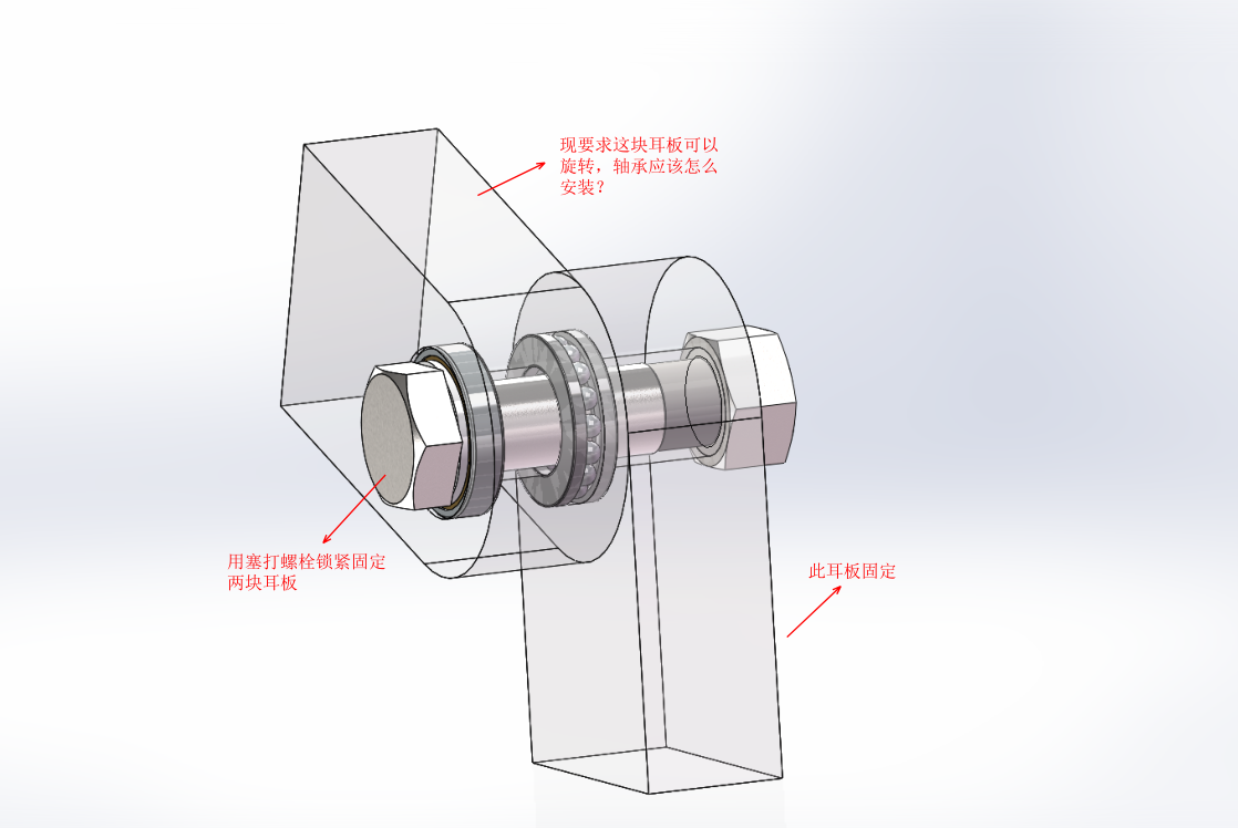 耳板厚度多少?使用中耳板不是轉整圈吧?吊裝用的嗎?承重多少? 軸從左端穿入,軸左端設計成軸肩對左端軸承定位,軸右端穿出固定耳板,用螺母軸向定位。 |